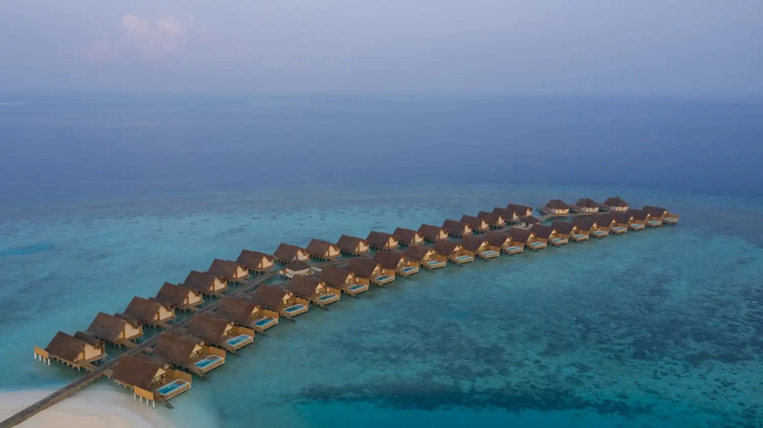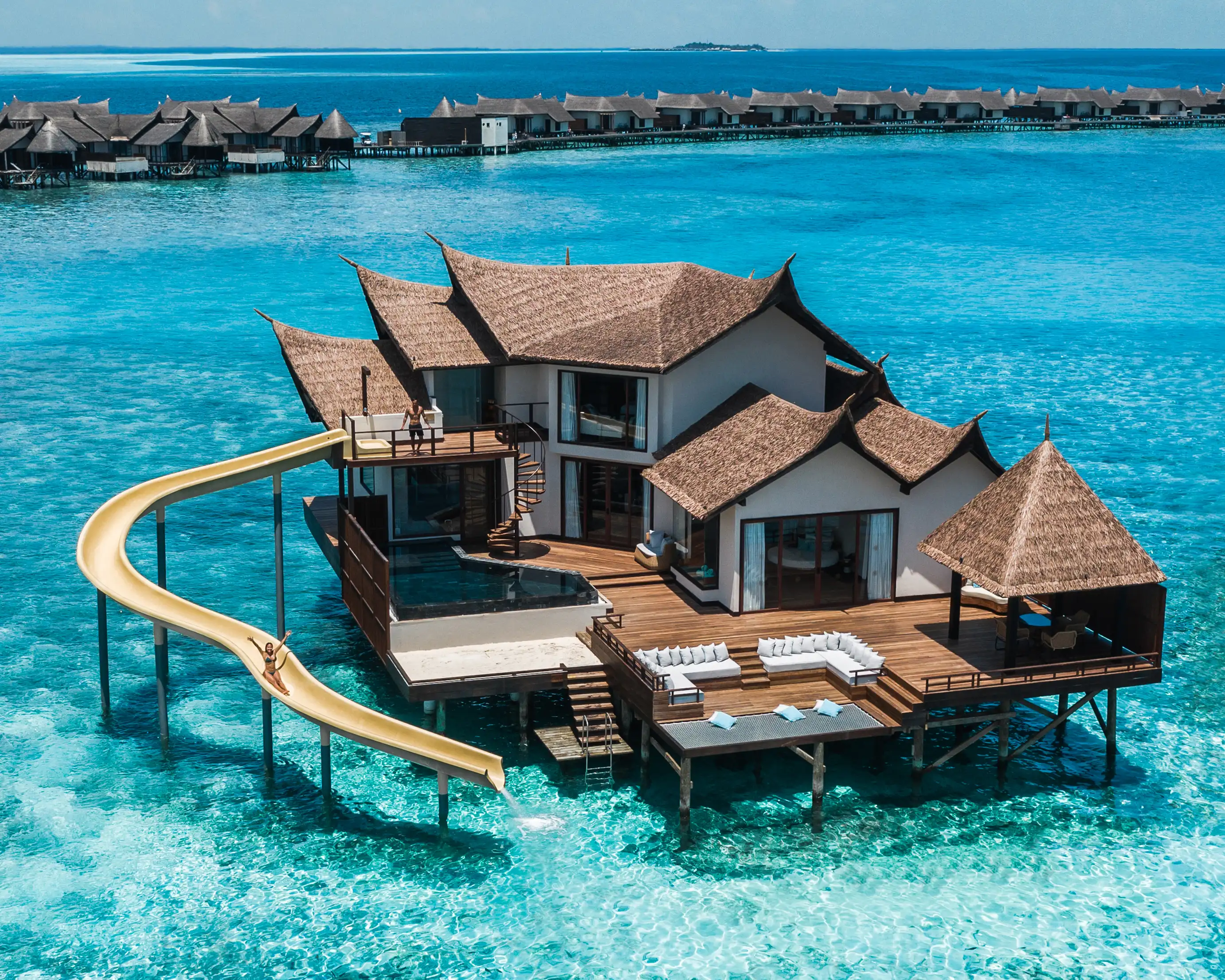 Jumeirah Vittaveli in the Maldives offers a luxurious honeymoon experience with pristine beaches and azure waters.