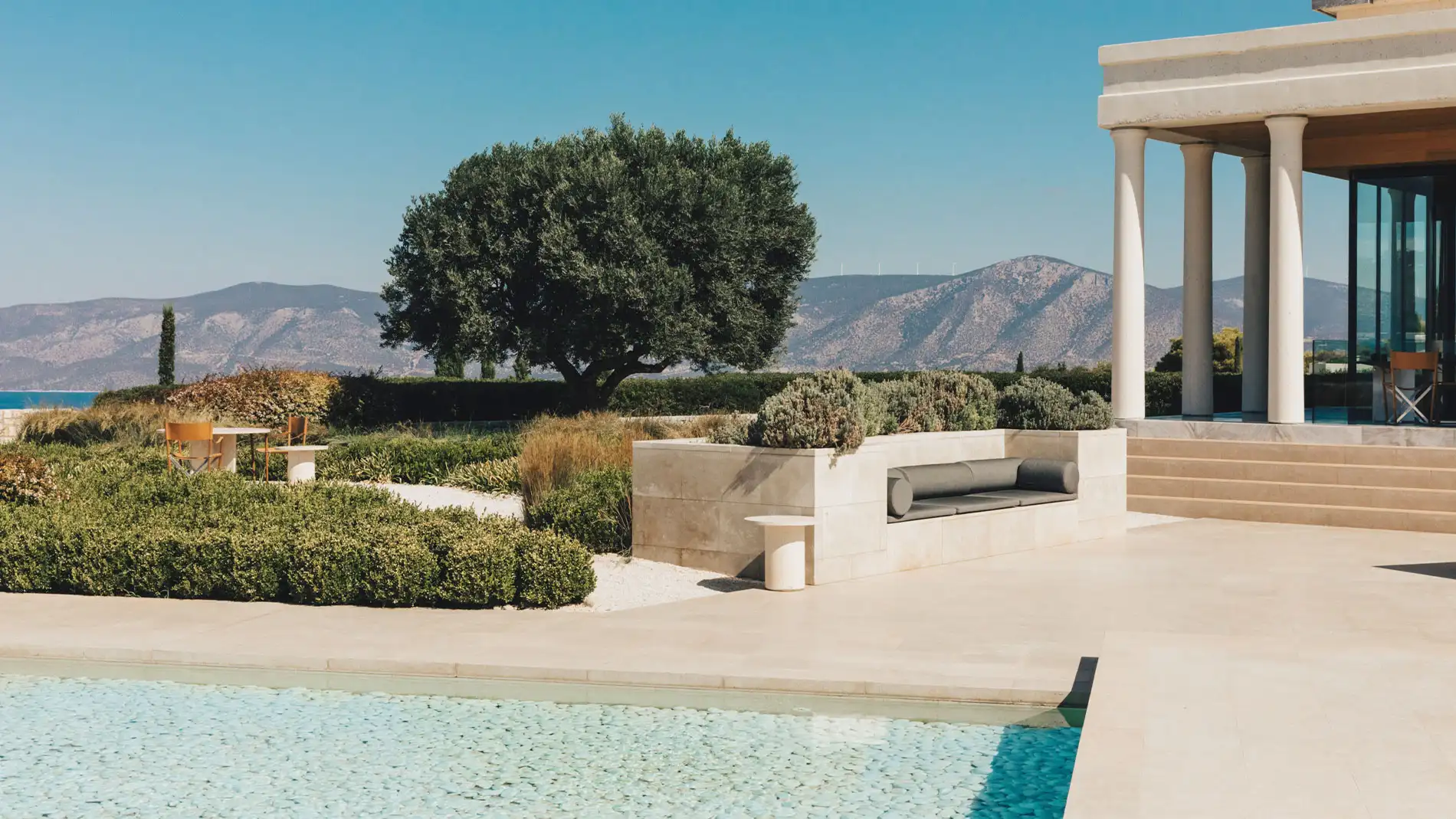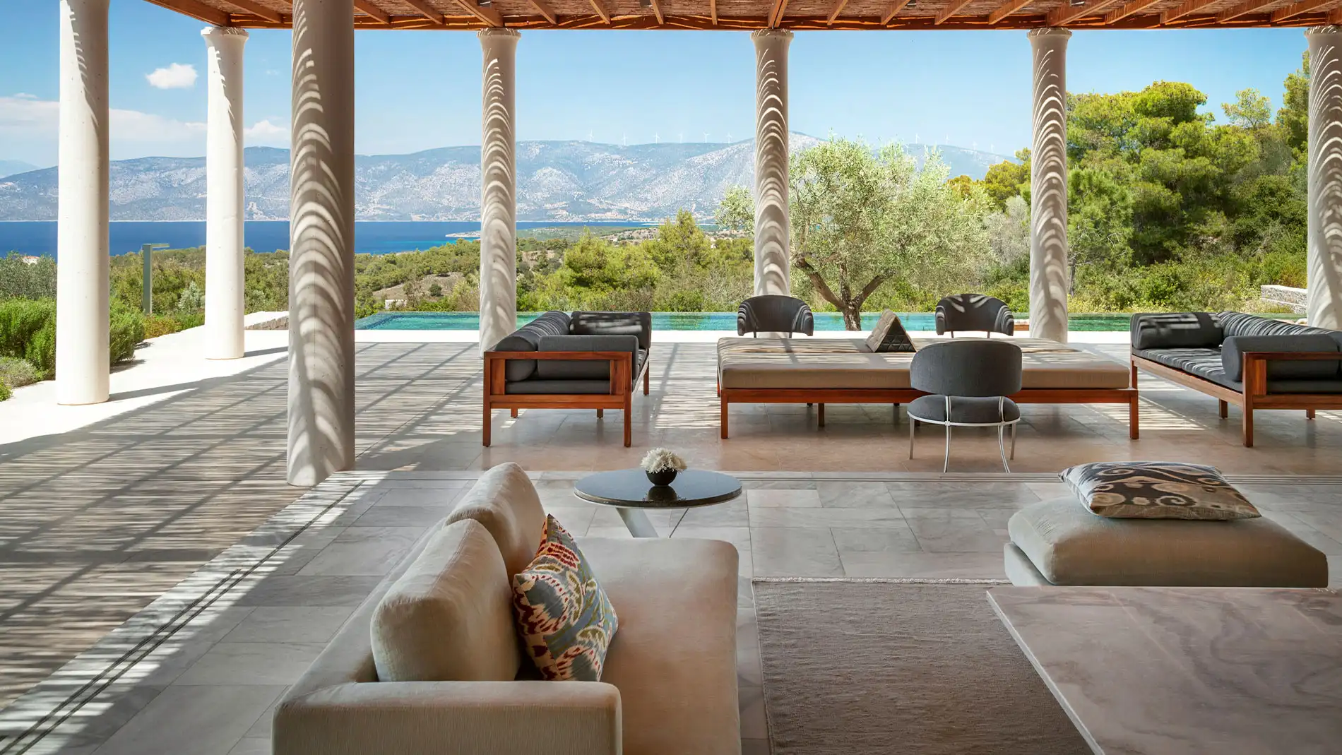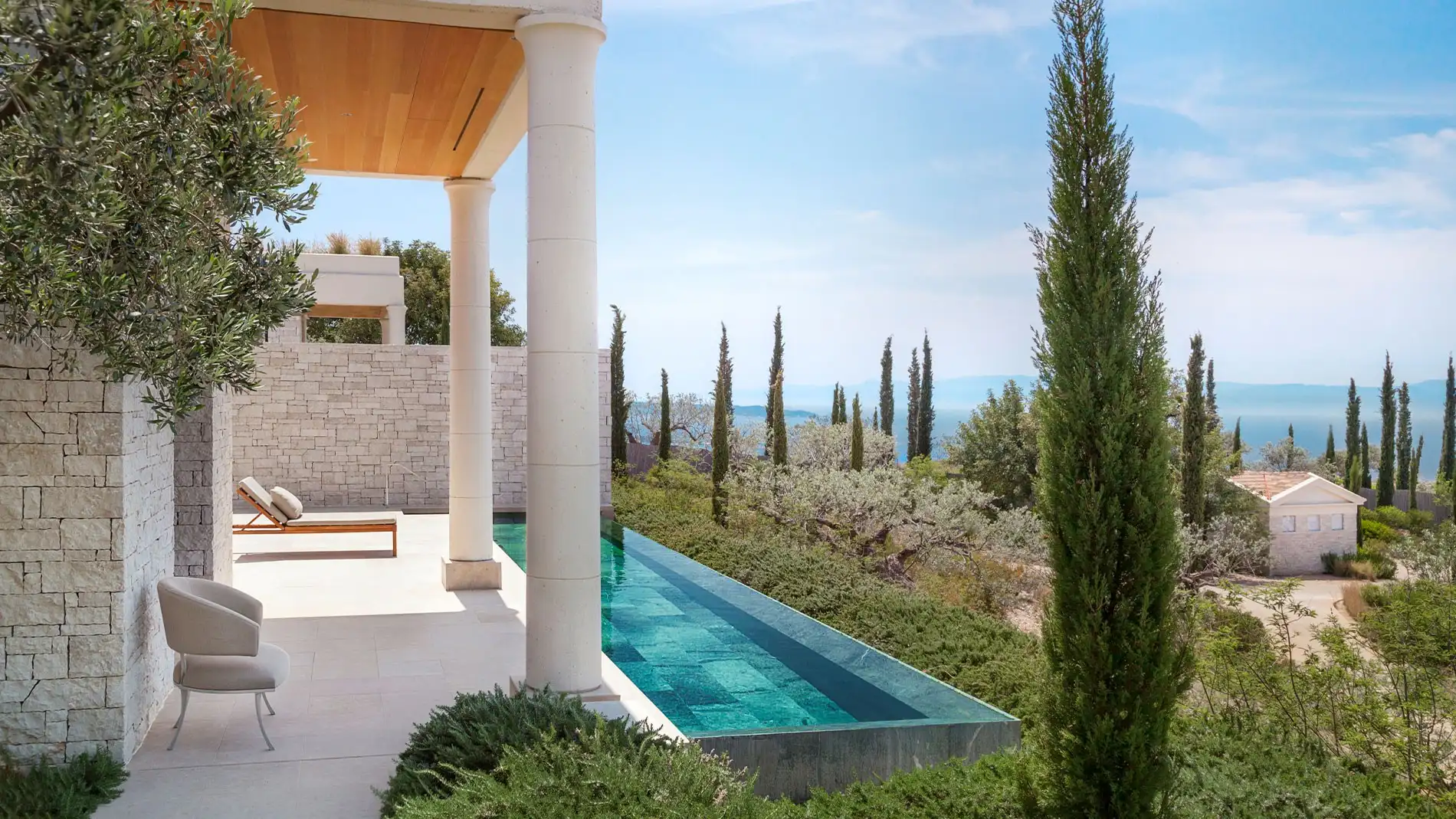 - Unwind in your private pavilion while taking in the breathtaking vistas of olive groves, the sea, and distant mountains.