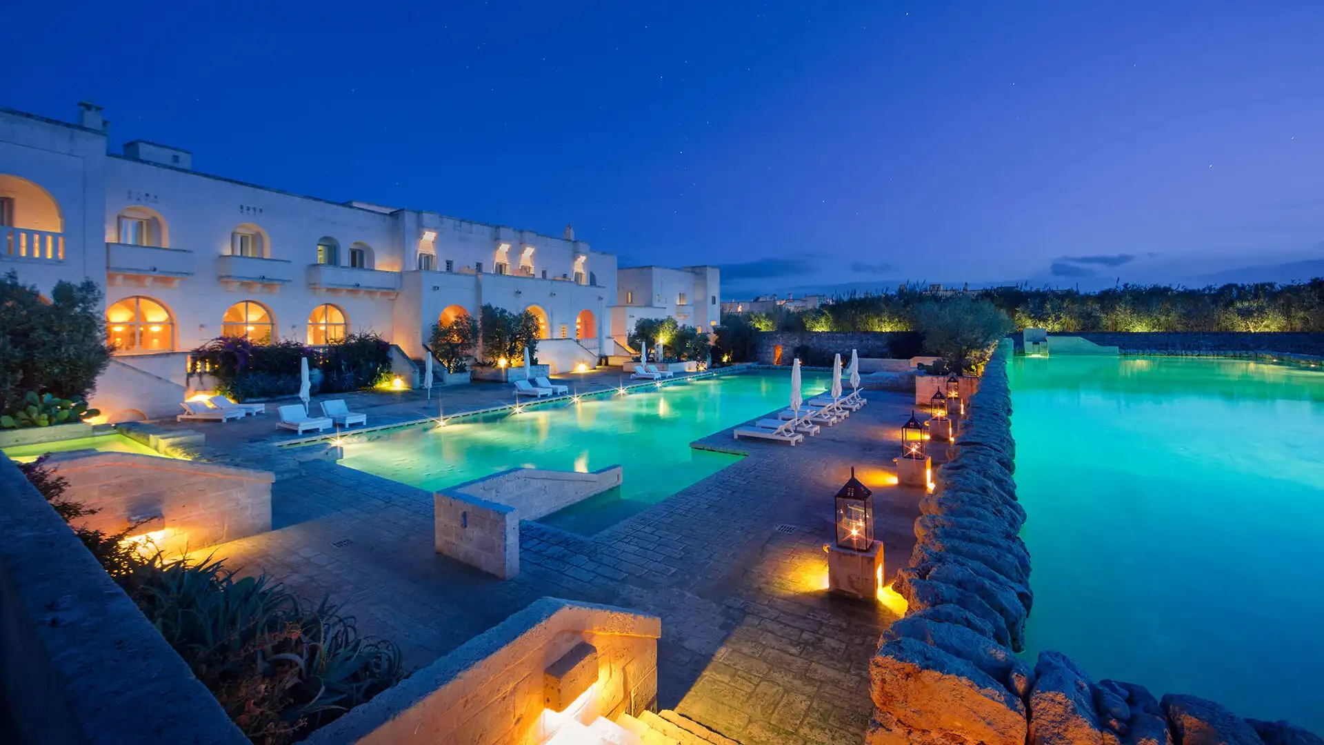 - Borgo Egnazia features four swimming pools and a 2800 m² wellness area.