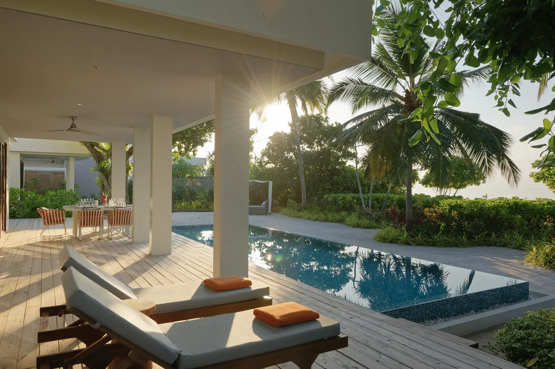 - Don your sunglasses, pick up an engaging novel, and sip a cool drink as you soak up the Maldivian sun from the cozy sun lounger on your private terrace.