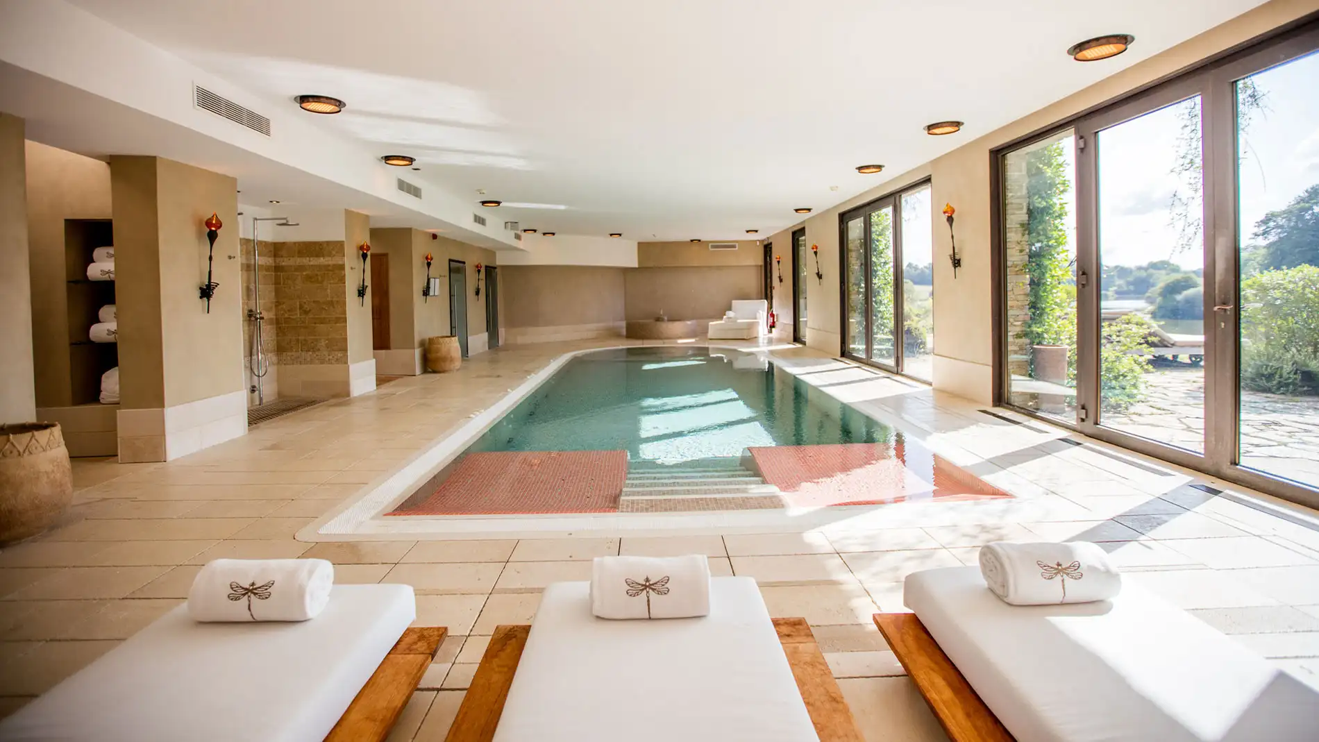 Housed in a charming old mill, the Moulin des Etangs spa offers a tranquil retreat tailored for all visitors. Families can enjoy the experience together, as children are welcome to partake in the wellness journey, promoting health and relaxation for every age group. The spa’s treatments emphasize seasonal ingredients, drawing from the natural elements of earth, air, fire, and water, utilizing local herbs, flowers, and grains. Nestled within the Castle, guests can indulge in a heated indoor pool and thermal baths for ultimate relaxation, while a sun-drenched terrace and heated outdoor pool provide an enjoyable atmosphere for everyone.