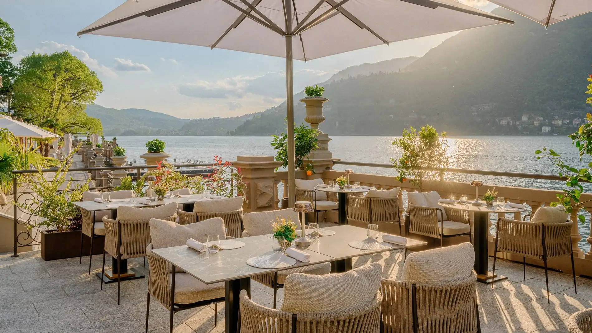 - The expansive terrace at CO.MO Bar & Bistrot invites you to enjoy meals al fresco, surrounded by lush greenery and the beautiful lakeside ambiance.