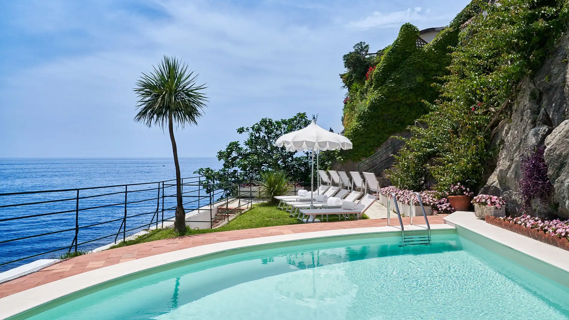 - unwind next to the heated outdoor pool with stunning sea views