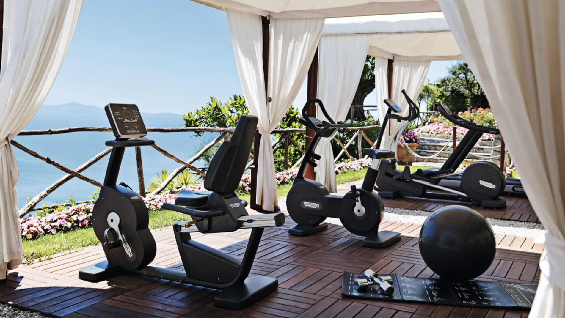 - The hotel features an outdoor fitness center set in the gardens with stunning sea views.